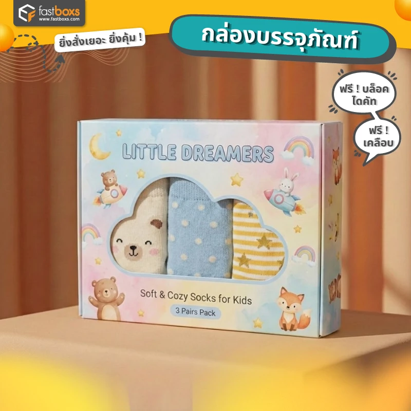 ผลิตPackagingใส่ถุงเท้า กล่องใส่สินค้า กล่องบรรจุภัณฑ์หลากหลายรูปแบบ