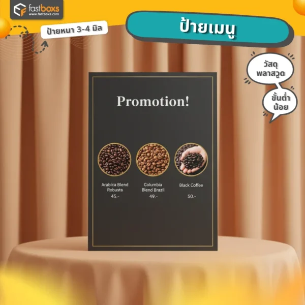 ป้ายเมนูแบบแข็ง ทนทาน กันน้ำ น้ำหนักเบา ทันสมัย