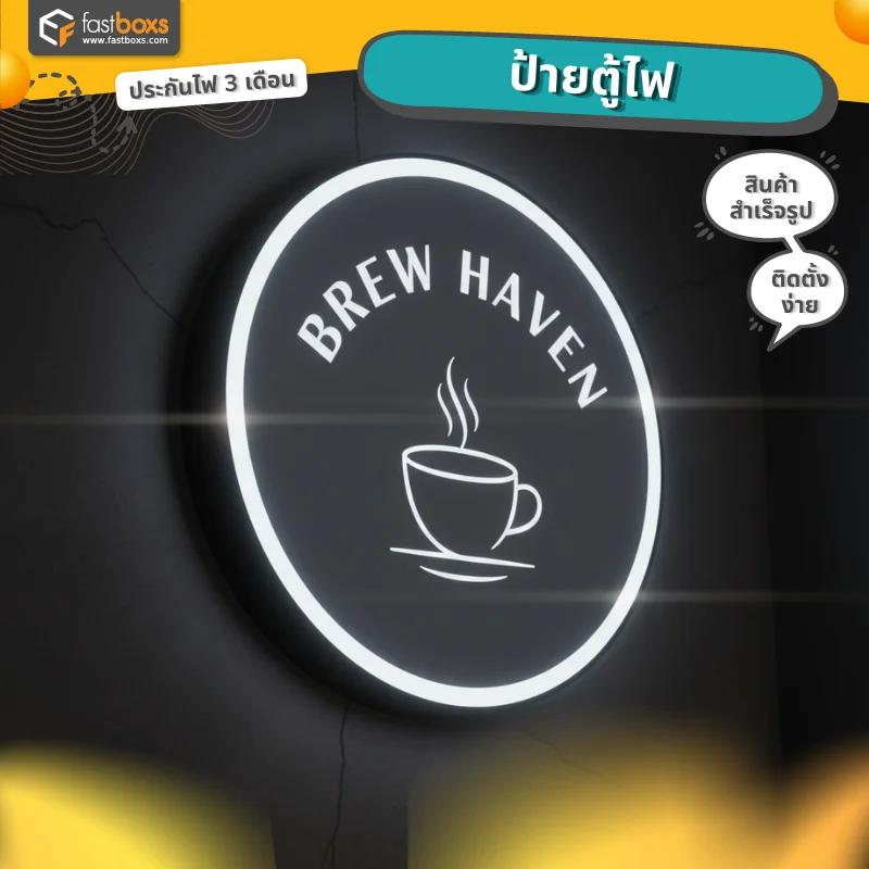 ป้ายไฟหน้าร้านวงกลม แบบติดผนัง ด้านเดียว พิมพ์โลโก้ร้าน ราคาพิเศษ 990 บาท (ราคารวมพิมพ์แล้ว)