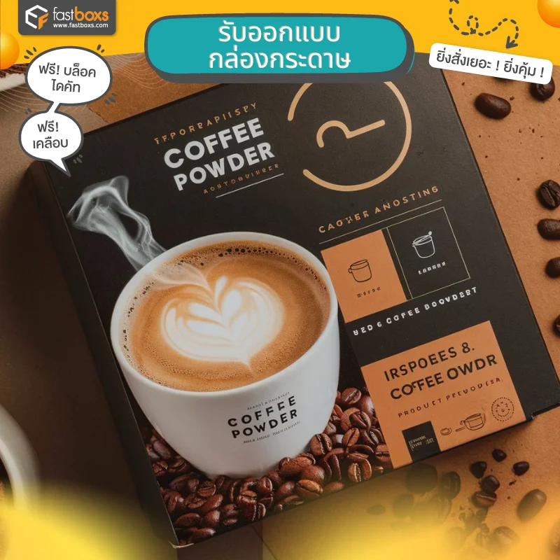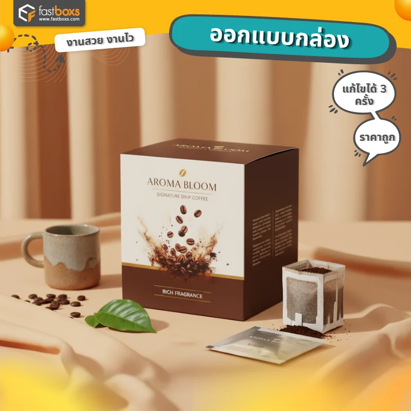 ออกแบบกล่องออนไลน์ ออกแบบกล่องกาแฟพร้อมผลิต ราคาถูก (Online Design and Printed Box Bangkok) ฟรีเคลือบ PVC