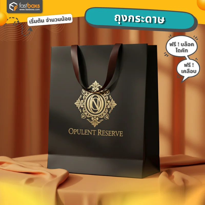 Fastboxs โรงพิมพ์ถุงกระดาษ เริ่มต้น 300 ใบ ฟรีออกแบบเมื่อสั่งผลิต ถุงช้อปปิ้ง ถุงหูหิ้ว ถุงแฟชั่น ฐานรองอย่างดี